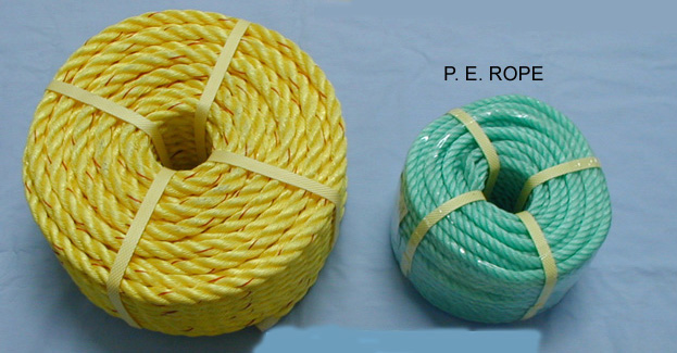 A)Ropes, 3 or 4 strands, Diam: 2-120mm, including: PE. Ropes, P.P ropes, Nylon ropes, Polyester ropes,